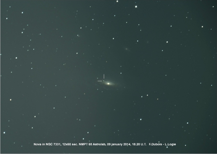 Wie doet een poging om "SN 2014C" visueel te vinden (of is het iemand al gelukt)? Het wordt wel een lastige taak omdat hij vrij dicht bij de kern van NGC 7331 staat. De AAVSO heeft jammer genoeg geen sequentie met vergelijkingssterren. Op het astroforum.nl is er wel een post met onder meer een kaartje met helderheden (4).