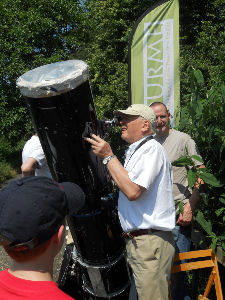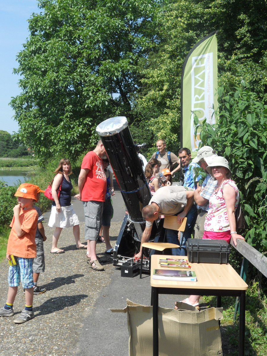 VVS Scheldeland stond opgesteld aan het bezoekerscentrum Molsbroek te Lokeren, tussen 14 en 18 uur, met een aantal telescopen, waaronder een grote Newton telescoop met een zonnefilter voor zichtbaar licht en een 6cm Lunt H-Alpha telescoop om filamenten, flares en randdetails op de zonneschijf te bekijken.