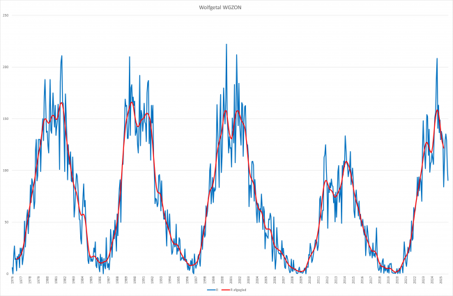 Het bepalen van het Wolfgetal is de belangrijkste activiteit binnen de werkgroep. Er zijn ondertussen al 3 volledige cycli waargenomen door onze leden!